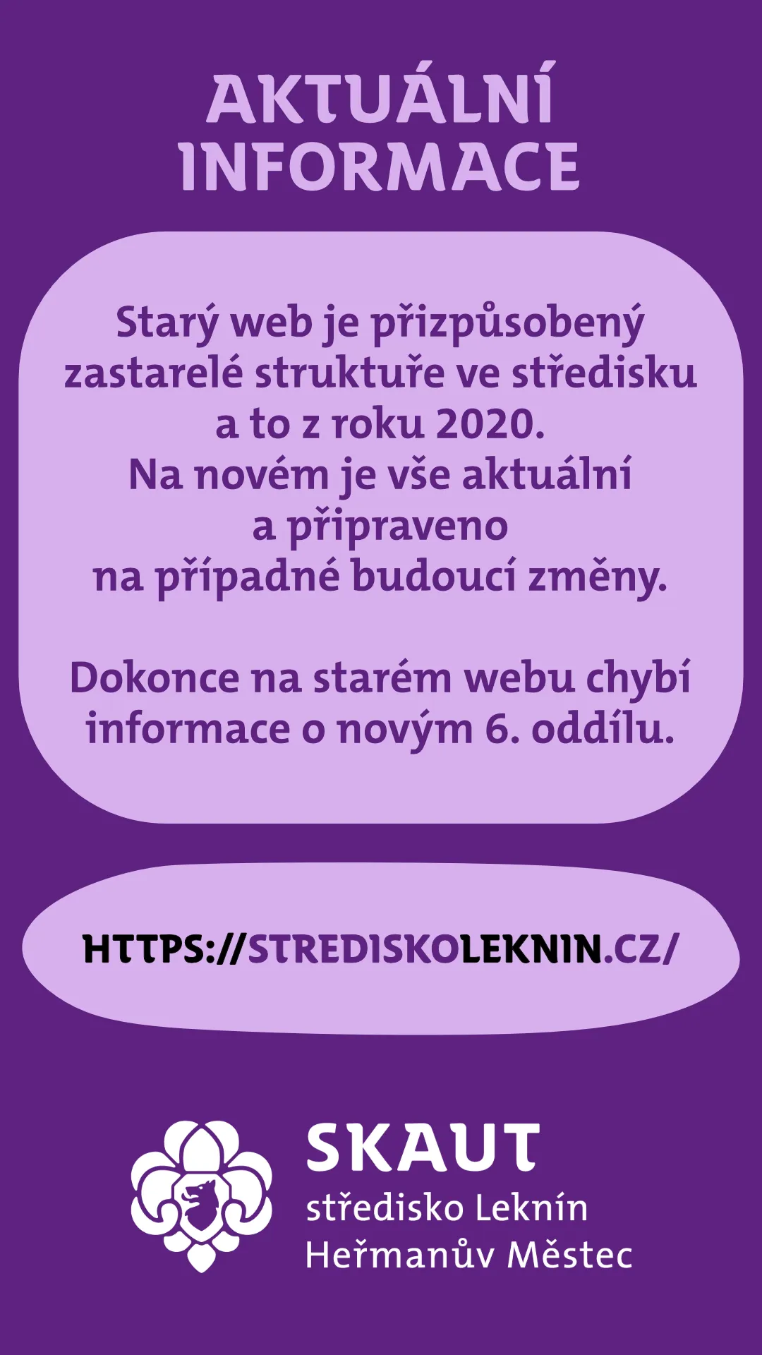 Proto Šroubek v roce 2024 vytvořil nový web, který odpovídá aktuální struktuře a to včetně 6. oddílu, který vznikl tento rok a ani není na starým webu.